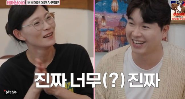 현재 43세인 산모. 18년 만에 넷째 늦둥이 임신한 상황이다. 마침 무정자 남편이 등장. 박수홍이 깜짝 놀랐다. 병원측에선 "임신 확률 0%"라고 말했다는 것. 절대 임신할 수 없는 상황에 남편은 아내와 친자확인까지 얘기가 나왔다고. 아내는 "친자 맞으면 짐 싸서 나가라고 했다"며 "꼬물이에게 남편 손을 올리면 안 움직여 내가 아빠가 아니라서 그러냐더라"며 섭섭했던 일화를 전했고, 박수홍은 "농담이시죠"라며 어쩔 줄 몰라했다.