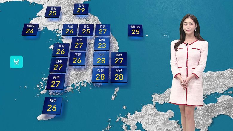 지역별 낮 기온 자세히 보시면 청주가 27도, 부산 28도까지 오르겠습니다.