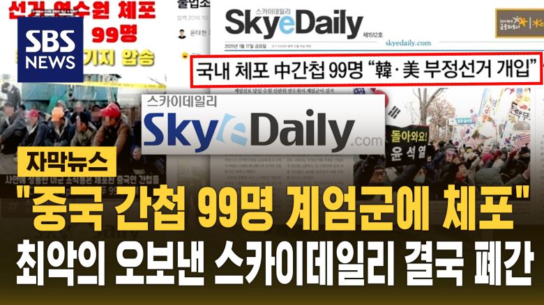 지난해 비상계엄 당일 계엄군이 중앙선거관리위원회 선거연수원에서 중국인 간첩 99명을 체포했다고 오보를 낸 온라인 매체 스카이데일리가 폐간됩니다.