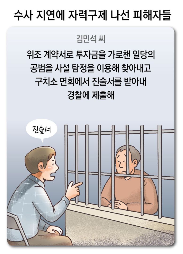 김민석(가명) 씨가 경찰관에게 다급한 목소리로 알렸다. 수십억 원대 사기를 치고 달아난 5인조 일당 공범이 구치소에 수감돼 있으니 조사해 달라는 요청이었다. 사기를 당한 지 1년 만이었다.
