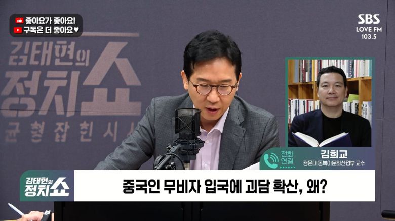 ▷김태현 : 최근 중국인 단체 관광객의 무비자 입국이 허용됐습니다. 그러자 SNS 중심으로 각종 괴담들이 떠돌고 있는데요. 왜 이런 현상이 벌어지고 있는 걸까요. 그동안 반중·혐중정서를 분석해 오신 분입니다. 김희교 광운대 동북아문화산업학부 교수 전화로 연결돼 있습니다. 교수님, 안녕하세요.
