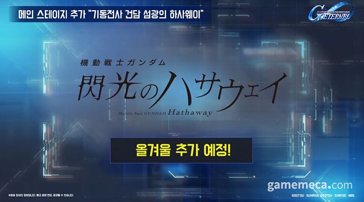 11월 중순에서 하순에는 더 블루 데스티니가 열리며 블루 데스티니 1호기와 2호기, 이프리트 개량형이 개발 가능 유닛으로 출격한다. 그리고 올해 겨울을 장식하는 주인공은 샤아의 반란 후 12년 뒤를 그린 섬광의 하사웨이다. 특히 섬광의 하세웨이 업데이트에 맞춰 우주세기 개벽부터 105년까지를 다룬 특별 시나리오 ‘혁명가들’도 공개된다. 반주년부터 시작해 올해 연말까지 SD건담 지 제네레이션 이터널의 스토리는 우주세기와 비우주세기를 넘나들며 점점 확장될 예정이다.