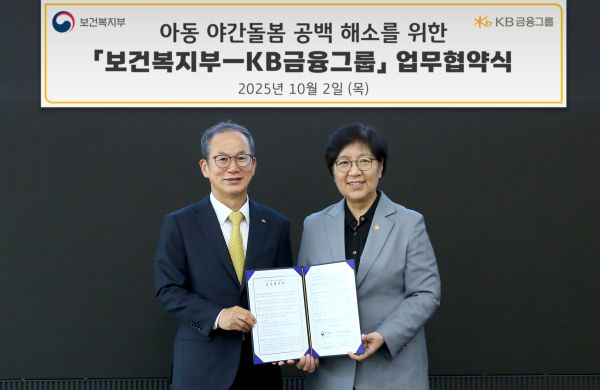 이번 협약은 최근 잇따른 화재로 인해 아이들이 희생되는 안타까운 사고를 계기로, 보건복지부에서 추진하고 있는 '아동 야간 연장돌봄사업'을 지원하고자 진행됐다. KB금융과 보건복지부는 기존 오후 8시까지만 운영되던 지역아동센터와 다함께돌봄센터 중 일부를 밤 12시까지 단계적으로 확대 운영한다.