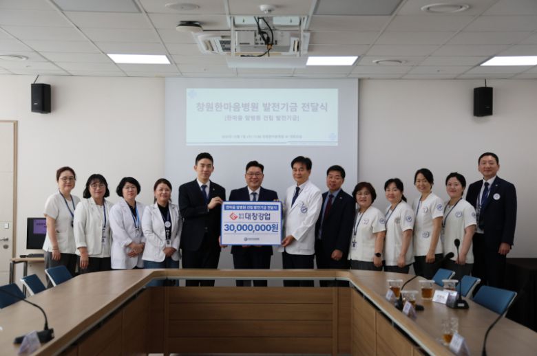 대창강업이 창원한마음병원이 추진하는 첨단 암병원 건립 사업을 지원하기 위해 발전기금 3000만원을 기부했다.