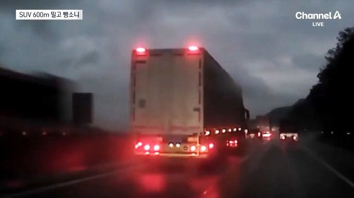 당시 빗길 속 차로를 달리던 트레일러는 SUV를 들이받은 뒤 속력을 줄이지 않은 채 600m 가량 밀고 갔다. SUV는 좌측으로 90도 회전한 채 속수무책으로 밀려갔다. 당시 블랙박스 영상에 따르면 SUV 운전자는 경적을 울리며 “으악, 으악! 멈춰 멈춰 멈춰”라고 외쳤지만, 트레일러는 멈추지 않았다.