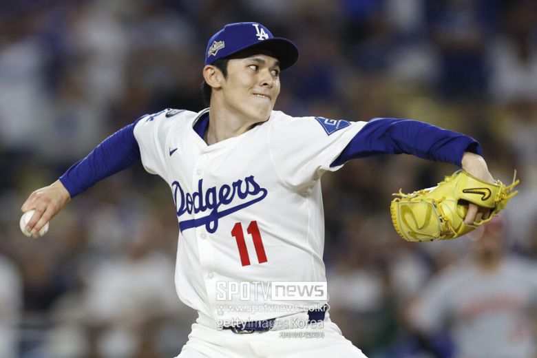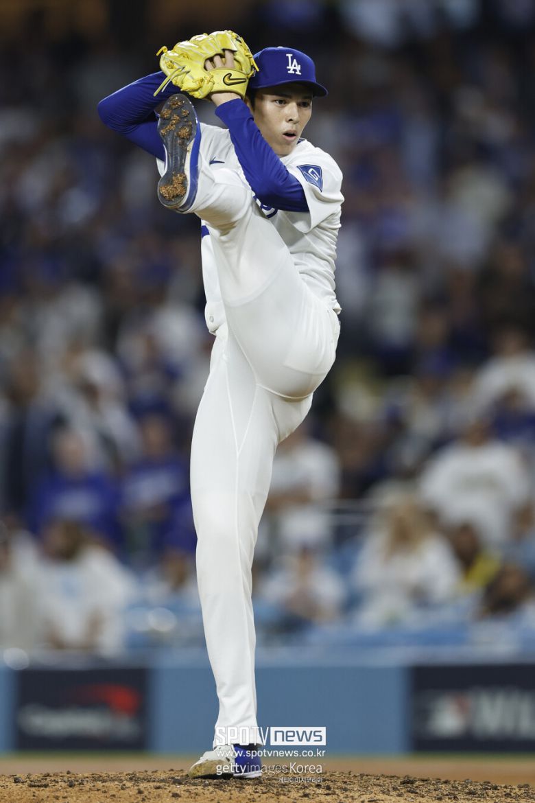 여전히 4점 차였던 9회초 사사키가 출격했다. 올해 빅리그에 데뷔한 사사키의 메이저리그 포스트시즌 첫 등판이었다.