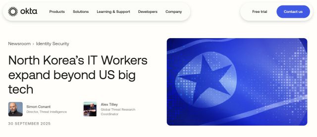 옥타 위협인텔리전스는 지난달 30일(현지시간) "북한의 IT 근로자 사기가 원격 인력을 고용하는 모든 산업을 위협하고 있다"며 "이러한 위협은 미국과 기술 분야에만 집중된 것이 아닌 금융·의료·공공 등 점점 더 많은 국가의 전문 서비스업으로 확장되고 있다"고 평가했다.