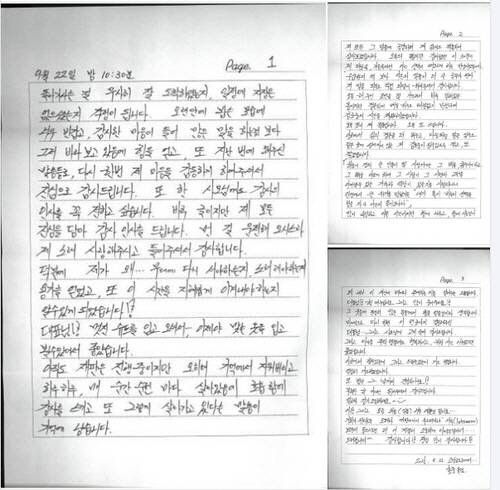 [스포츠조선 문지연 기자] 음주운전 뺑소니 혐의로 복역 중인 트로트 가수 김호중이 자필 편지를 남겼다.
