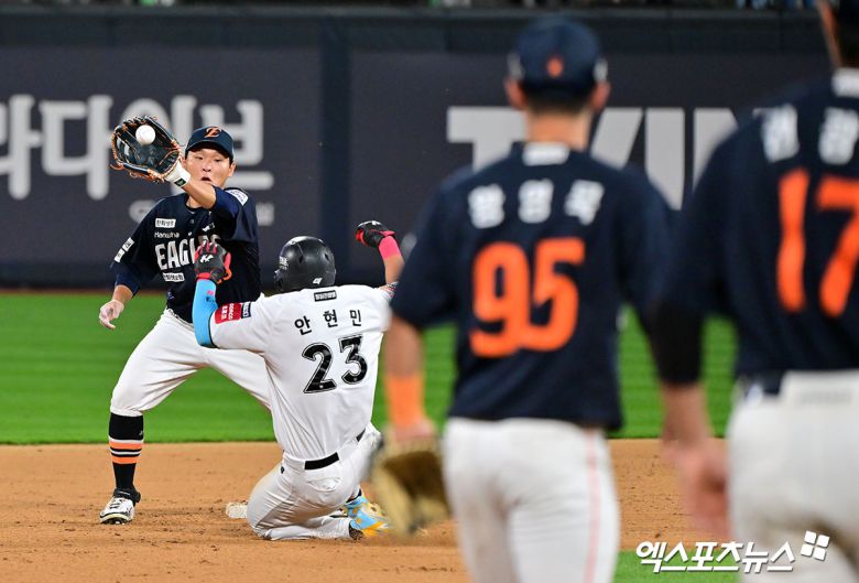 만약 김민혁이 3루에 도착한 안현민을 보고 일찌감치 태그를 당했거나, 김민혁이 3루에서 살고 안현민이 아웃됐다면 2사 3루의 찬스가 이어질 수 있었다.