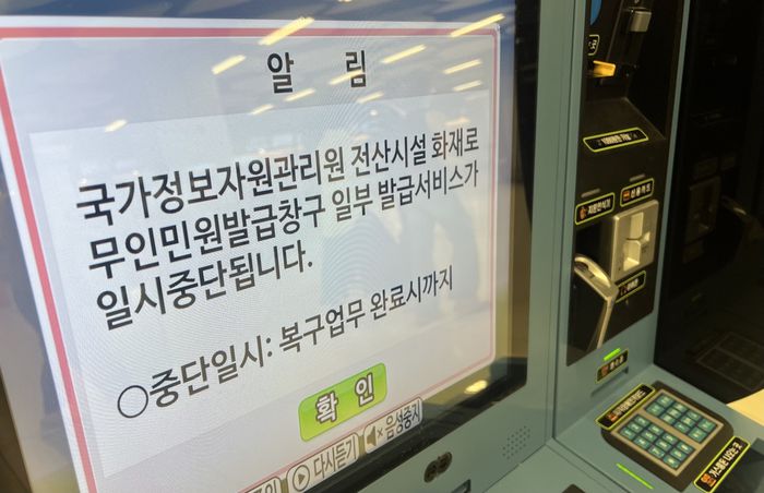 한편 정부는 국가정보자원관리원 화재로 인해 전산시스템 647개가 마비된 상태이며 주요 시스템 복구까지는 4주가량 소요될 것으로 예상하고 있다. 복구 작업이 완료될 때까지는 국민 생활과 공공서비스 전반에 걸친 불편이 이어질 전망이다.