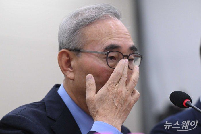 김영섭 KT 대표이사가 24일 오전 서울 여의도 국회 과학기술정보방송통신위원회에서 열린 해킹 사고 진상 규명 관련 청문회에 증인으로 출석해 의원의 질의를 경청하던 중 안경을 고쳐 쓰고 있다. 사진=강민석 기자 kms@newsway.co.kr |