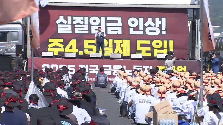 <김형선 / 전국금융산업노동조합 위원장> "25년 만에 금융노조는 노동시간 단축, 주 4.5일제를 쟁취하는 총파업을 선언합니다."