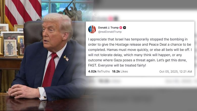 도널드 트럼프 미국 대통령이 팔레스타인 무장정파 하마스를 향해 "시간끌기나 가자지구가 다시 위협에 놓이는 어떠한 결과도 용납하지 않을 것"이라고 밝혔습니다.