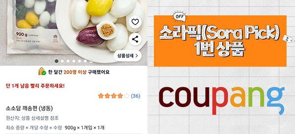 쿠팡에서 판매하는 송편 가운데 '소소담'에서 나온 '깨송편'은 강력 추천할만한 맛이야. 우선 집에서 만든 것 같은 퀄리티의 모양을 비롯해 단맛과 고소한 깨의 조화가 절묘하거든.