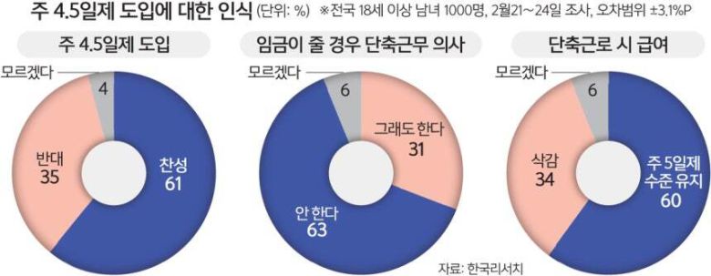 금융노조는 “(잠정 합의안은) 2025년에는 주 4.5일제 도입에 필요한 논의 대상을 수집·선별하며, 2026년 산별교섭에서 이를 토대로 주 4.5일제 도입 논의를 지속하겠다는 내용”이라며 “주 4.5일제 도입을 위한 발판을 마련했다”고 자평했다.