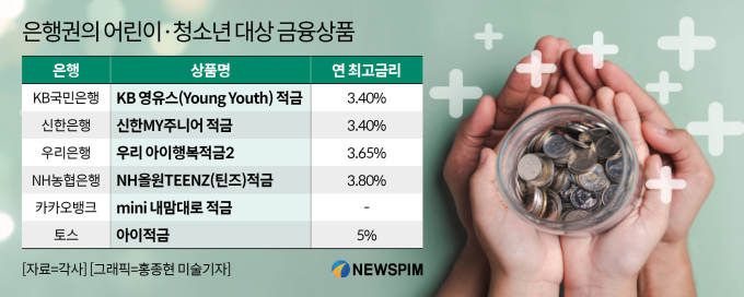 금융권에 따르면 주요 시중은행과 인터넷은행들은 어린이와 청소년을 위한 적금, 펀드 등 다양한 상품을 운영하고 있다. 특히 최근 들어 미래 고객 유치를 위해 고금리 혜택을 강화한 신규 상품도 속속 선보이는 추세다.