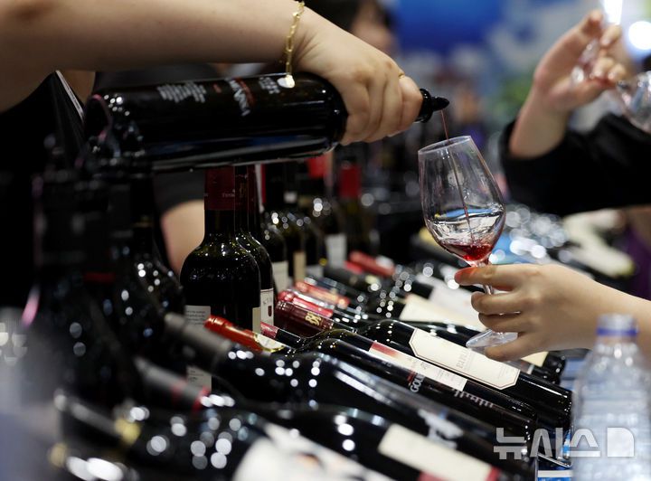 [서울=뉴시스] 김진아 기자 = 서울 강남구 코엑스에서 열린 2025 서울국제주류&와인박람회에서 관람객이 와인을 시음하고 있다. 2025.06.26. bluesoda@newsis.com