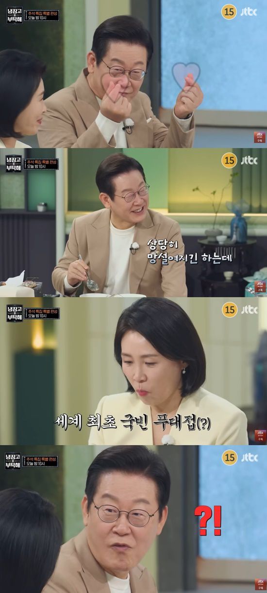 김혜경 여사와 함께 등장한 이 대통령은 '냉장고를 부탁해' 출연을 결정한 이유로 "K-POP과 드라마도 중요한데, 진짜 문화의 핵심은 음식이다"라며 K-푸드를 널리 알리고 싶다는 바람을 전했다.
