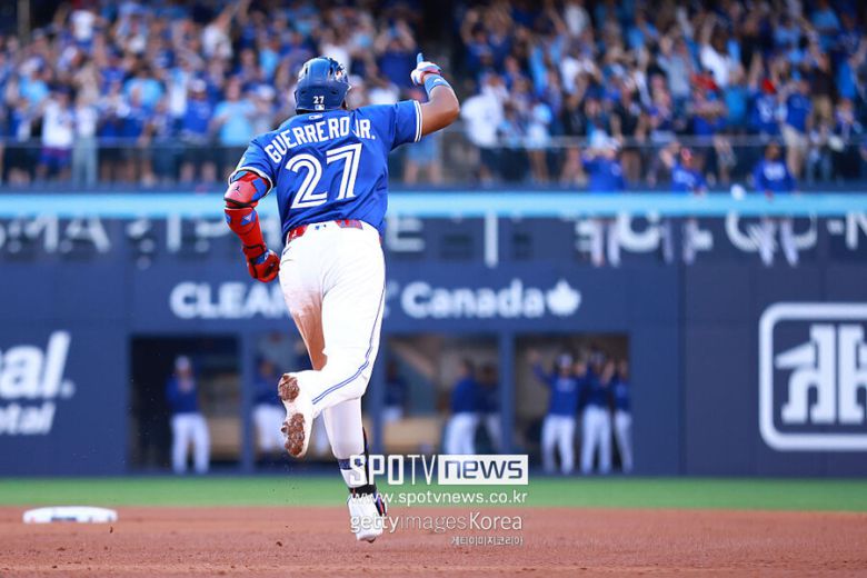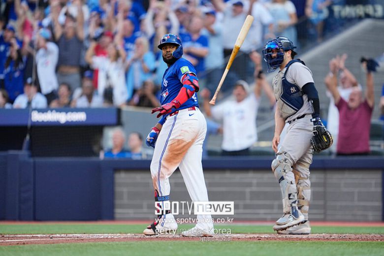 그런 게레로 주니어가 화끈한 복수혈전을 완성하기 일보 직전이다. 토론토는 5일과 6일(한국시간) 홈구장인 로저스 센터에서 열린 뉴욕 양키스와 아메리칸리그 디비전시리즈 1·2차전에서 모두 폭발적인 타선을 앞세워 완승하고 챔피언십시리즈 진출까지 1승만 남겼다. 1차전은 10-1, 2차전도 13-7로 이겼다. 2차전은 6점 차였지만, 토론토가 4회까지만 11점을 내 12-0까지 앞서는 등 경기 분위기가 완전히 기울었다. 양키스의 경기 중·후반 7득점 추격은 사실 의미가 크지 않았다. 토론토가 두 경기 연속 대승을 거뒀다고 해도 무방했다.