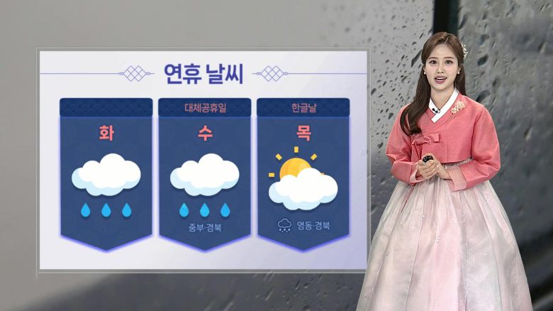 연휴 마지막 날이자, 한글날인 목요일엔 영동과 경북에만 비 예보가 들어있습니다.