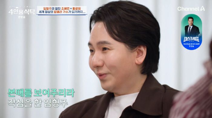 6일 방송된 채널A '절친 토큐멘터리 - 4인용식탁'에서는 세계 무대를 누비는 팝페라 테너 임형주가 절친 조혜련, 황광희를 초대해 추석에 어울리는 'K-엄마표' 한 상을 대접했다.