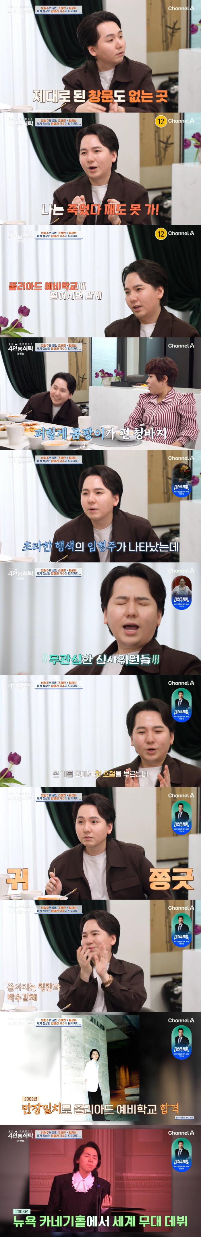 이날 임형주는 "1988년 5월 2일 데뷔했지만, 부모님이 방송 활동을 반대하셨다. 그때 부모님과 타협점이 성악이었다"면서 "입시 두 달 앞두고 예술중학교 합격하면 노래를 하게 해주겠다고 약속하셨다. 성악 레슨 딱 4번 받고 4등으로 합격했다"고 밝혀 놀라움을 안겼다.