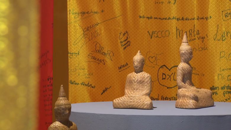 태국의 한 사찰에서 열린 탑돌이 행사에서 사용된 천을 5년 동안 모아 만든 작품입니다.