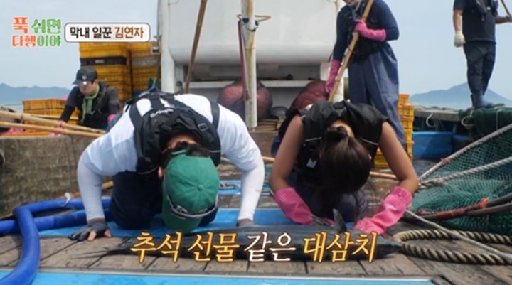 다른 일꾼들도 황금 막내 김연자를 극진히 보필했다. 먼저 붐은 배에서 내리는 김연자를 사뿐히 안아 상륙을 도왔다. 머구리 3인방 양세형, 박지현, 미미는 무인도도, 막내도 처음인 김연자에게 좋은 해산물을 보여주기 위해 열정적으로 해루질을 했다. 김연자의 어복 때문인지 머구리들은 안 좋은 시야에도 촛대고둥, 뿔소라, 문어 등을 잡으며 실력을 발휘했다.