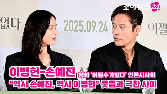 배우 손예진, 이병헌이 지난달 22일 오후 서울 CGV 용산아이파크몰점에서 열린 영화 '어쩔수가없다'(감독 박찬욱) 언론시사회에 참석해 소감을 말하고 있다. [영상=정소희, 문수지 기자]