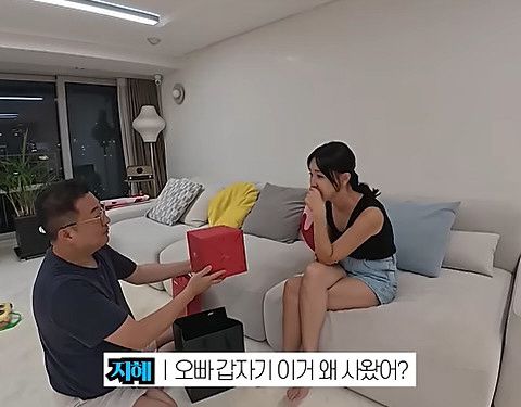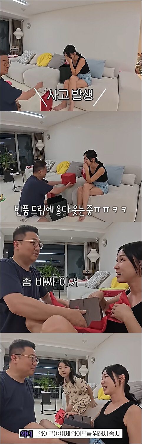 당황한 문재완은 "내가 선물 준 건데? 왜 울어? 이거 내돈내산"이라고 장난을 쳤고 태리 양도 "아빠가 선물 사줬어요"라고 분위기 수습에 나섰다. 하지만 이지헤는 좀처럼 감정을 추스르지 못하는 모습.