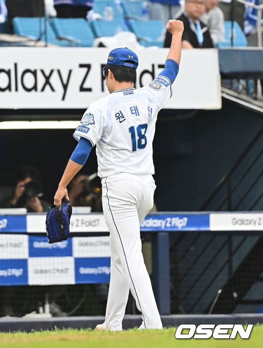 [OSEN=대구, 이석우 기자] 7일 대구 삼성라이온즈파크에서 2025 신한 SOL뱅크 KBO 와일드카드 결정전 삼성 라이온즈와 NC 다이노스의 경기가 열렸다. 홈팀 삼성은 원태인이 방문팀 NC는 로건이 선발 투수로 출전했다. 삼성 라이온즈 원태인이 6회초 수비를 마치고 팬들의 환호에 주먹을 불끈 쥐며 답하고 있다. 2025.10.07 / foto0307@osen.co.kr 이 기사의 카테고리는 언론사의 분류를 따릅니다.0공유하기