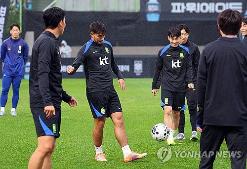 (고양=연합뉴스) 한종찬 기자 = 대한민국 축구 국가대표팀 옌스 카스트로프가 7일 고양종합운동장 보조구장에서 열린 축구 대표팀 오픈 트레이닝에서 훈련하고 있다. 2025.10.7