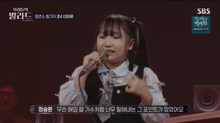 지난 7일 방송된 SBS 예능 프로그램 '우리들의 발라드'에서는 본선 1라운드가 펼쳐진 가운데 2015년생, 초등학교 4학년 이하윤 양이 무대에 올랐다.