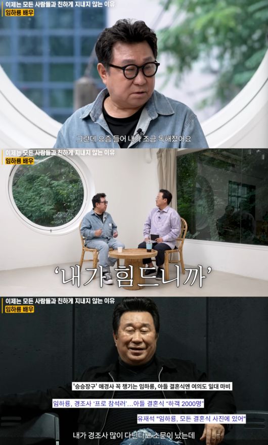 하지만 최근 들어 모든 사람과 친하게 지내지 않는 이유도 털어놨다. 임하룡은 “요즘 내가 좀 독해졌다. 예전엔 전화가 오면 다 받았는데 이제는 조금 덜어내는 시기가 온 것 같다”며 “사람들이 변했다고 하더라. 기분 나쁠 정도로 전화를 안 받고 끊기도 한다. 사실 나도 힘들다”고 솔직히 말했다.