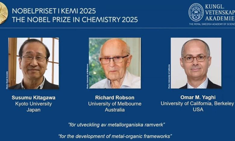 과학원은 7일 기타가와 스스무(74·일본) 일본 교토대 교수와 리처드 롭슨(88·영국) 오스트레일리아 멜버른대 명예교수, 오마르 야기(60·미국) 미국 버클리캘리포니아대(UC버클리) 교수를 노벨 화학상 수상자로 선정했다고 발표했다.