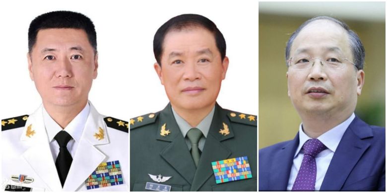먀오화 전 중앙군사위 주임(왼쪽부터), 허웨이둥 중앙군사위 부주석, 이후이만 전 증권 관리위 주석 |