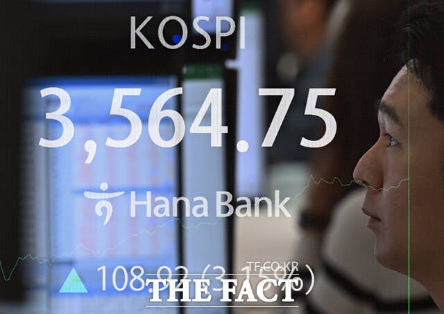 코스피가 사상 처음으로 3500선을 돌파한 2일 서울 중구 하나은행 본점 딜링룸 전광판에 코스피 지수가 나타나고 있다. /이새롬 기자