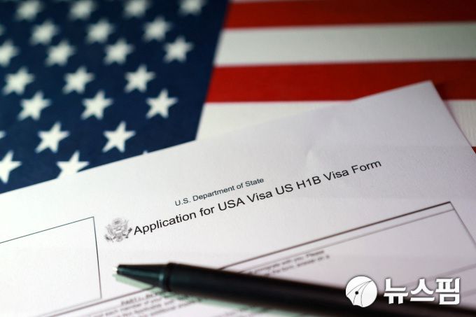 미국 국기와 미국 H-1B 비자 신청서 [사진=로이터 뉴스핌] |