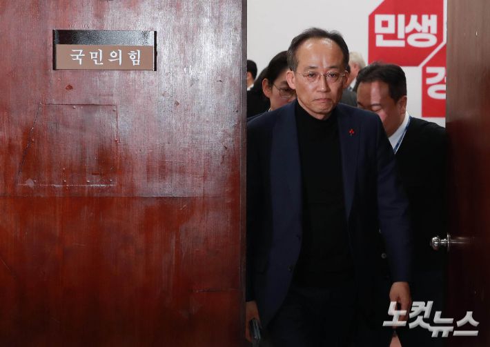 지난해 12월 4일 비상계엄 해제 요구 결의안 통과된 가운데 국민의힘 추경호 원내대표가 이날 오전 국회에서 열린 최고위원회의를 마친 후 어두운 표정으로 회의실을 나서고 있다. 황진환 기자 |