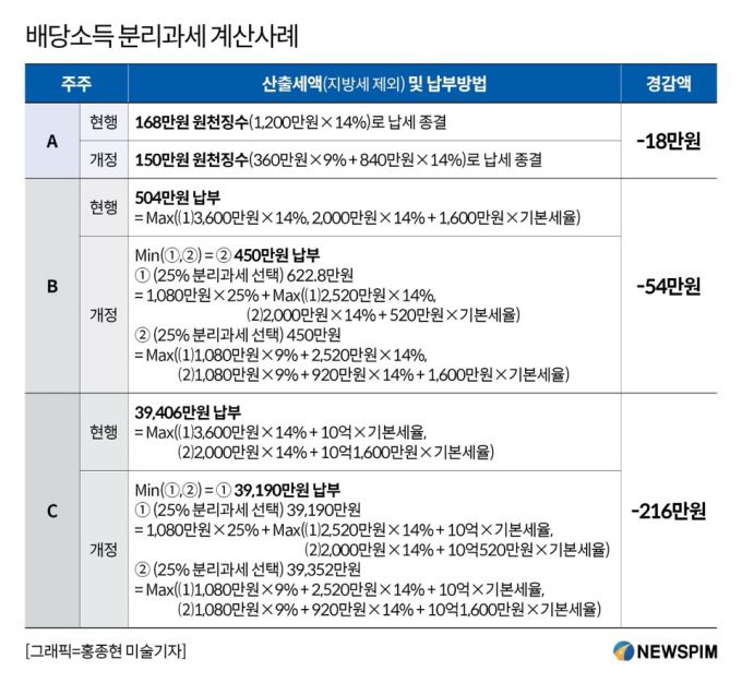 ◆ 배당소득 분리과세 35% vs 25%…기재부 분리 전 총결산 시험대