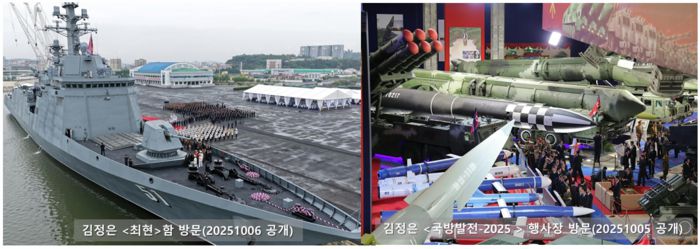 북한이 공개한 최현함과 국방발전 2025 행사장. 자료 | 유용원 의원실