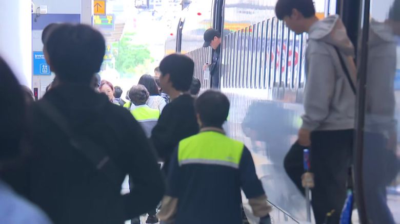 오전부터 고향에서 돌아온 시민들을 태운 열차가 도착하고 있습니다.