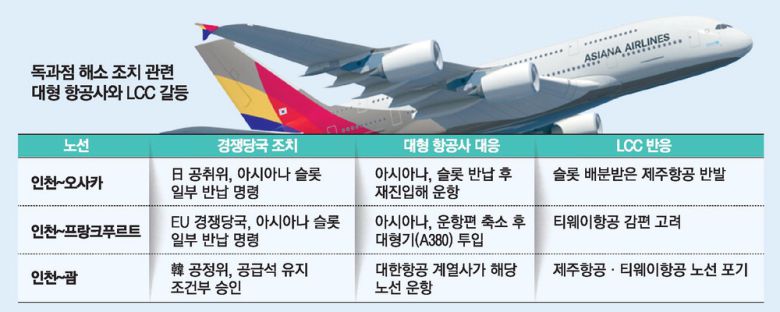 대한항공으로 통합을 앞두고 인천~오사카(간사이) 노선 왕복 '슬롯(운항 시간대)' 3개를 반납한 아시아나항공이 새로 슬롯 3개를 할당받아 예전과 같이 운항을 재개하면서 저비용항공사(LCC)들과 갈등을 빚고 있다.