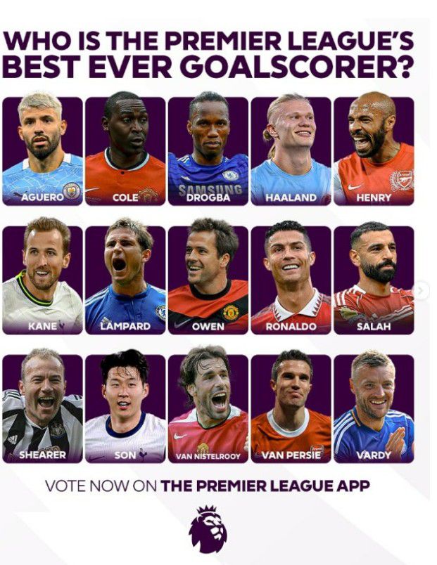 프리미어리그 사무국은 8일(한국시간) 공식 홈페이지를 통해 "프리미어리그에서 우리가 본 가장 위대한 골잡이는 누구인가?"라는 주제의 투표를 진행했다. 후보 명단에는 크리스티아누 호날두, 앨런 시어러, 루드 반 니스텔루이, 티에리 앙리 등 프리미어리그 역사에 한 획을 그은 선수들이 이름을 올렸다. 또한 해리 케인, 엘링 홀란 등 현역으로도 좋은 활약을 펼치고 있는 이들 역시 후보 명단에 합류했다.