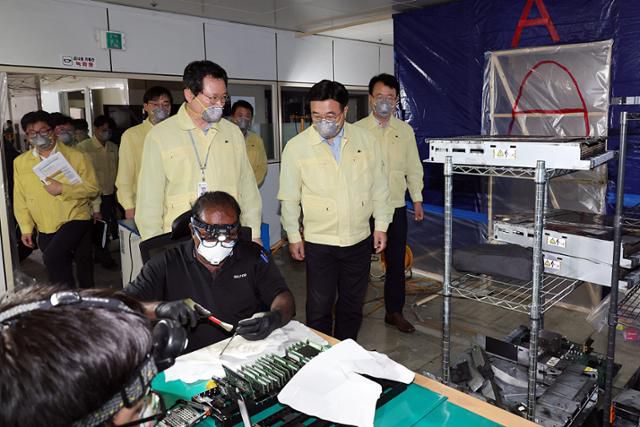 윤호중 행정안전부 장관이 8일 국가정보자원관리원 대전센터를 방문해 화재로 서비스가 중단된 행정정보시스템 복구 현장을 점검하고 있다. 행안부 제공