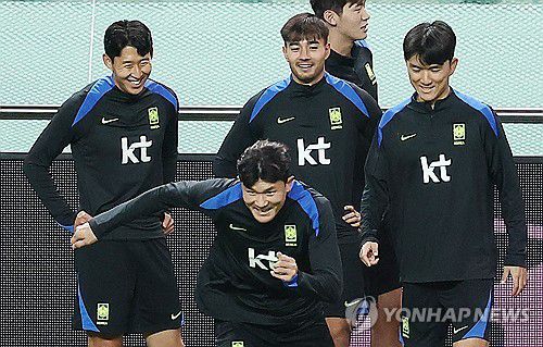 (서울=연합뉴스) 김성민 기자 = 대한민국 축구 국가대표팀 손흥민이 9일 서울월드컵경기장에서 공식 훈련을 하는 김민재를 지켜보고 있다. 2025.10.9