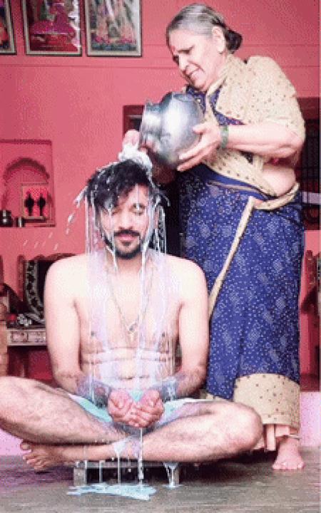 잠시 후 그의 어머니가 단지에 담긴 우유를 머리와 몸에 부으며 정화 의식을 진행했다. 매체는 이에 대해 과거 인도 전통에서 새로운 시작과 정화를 상징하는 의식이라고 설명했다. 남성 역시 이 시간을 통해 삶의 새로운 출발을 다짐하는 모습을 보였다.