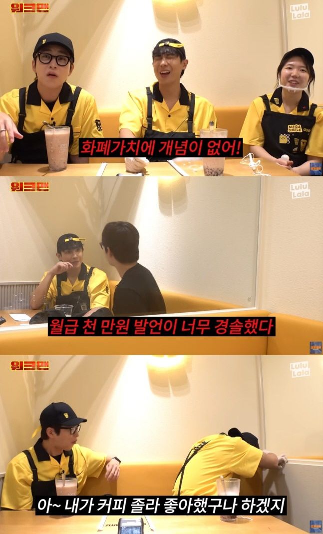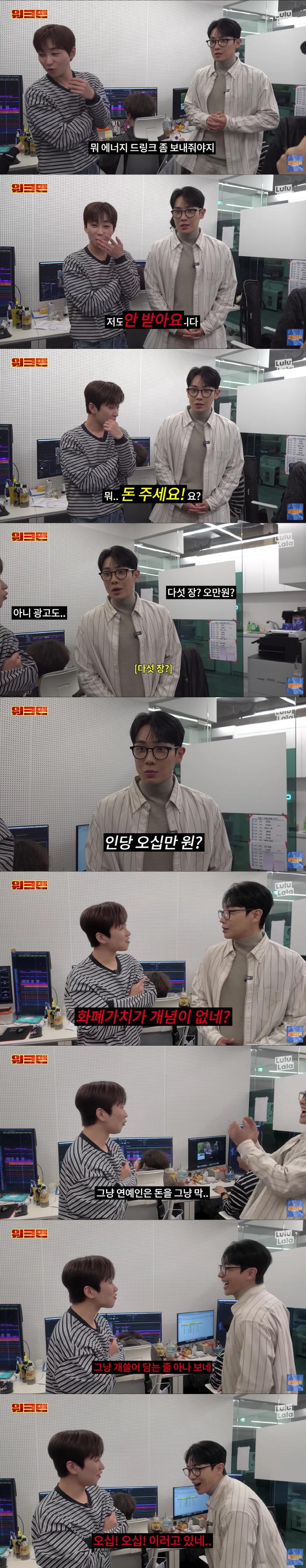 이때 제작진이 "돈으로 달라, 다섯 장이면 된다"고 장난치자, 이준은 "5만 원?"이라고 되물었고, 제작진은 "50만 원? 아니면 인당 50원?"이라며 웃음을 유도했다. 이를 지켜보던 딘딘은 "여기 제작진들 화폐 개념이 없다. 연예인이 돈을 막 쓸어담는 줄 아냐. 50만 원 얘기하고 있다"며 촌철살인을 날려 현장을 초토화시켰다.
