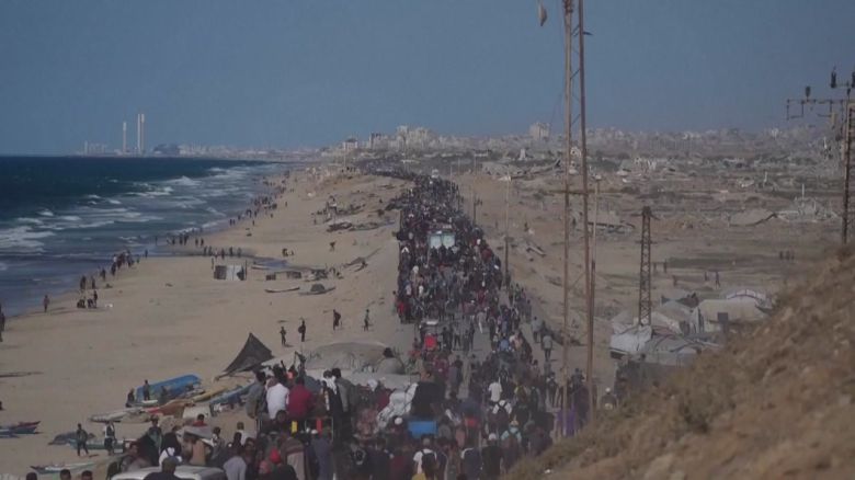 휴전 합의 1단계가 시행에 들어가면서 피란민들이 집으로 돌아가는 길입니다.