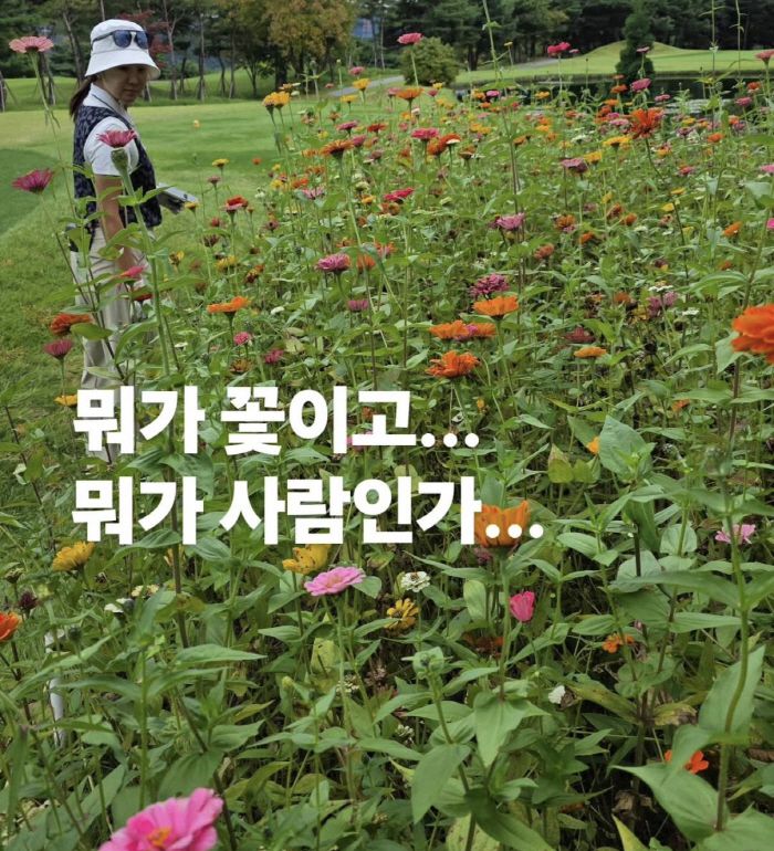 박준형은 11일 "뭐가 꽃이고 뭐가 사람인가"라며 꽃밭에 서있는 김지혜의 사진을 게재했다.